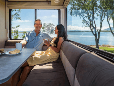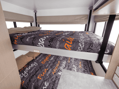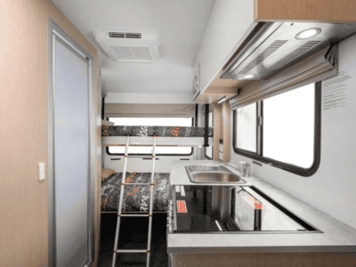 The Euro Quest is an innovative camper designed for up to four people. With a dinette that converts to a double bed and an electric drop-down double bed above it, this space saving camper will be super popular for a family of four or group of friends.