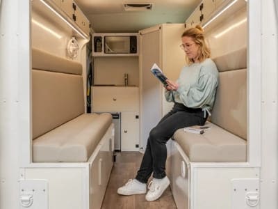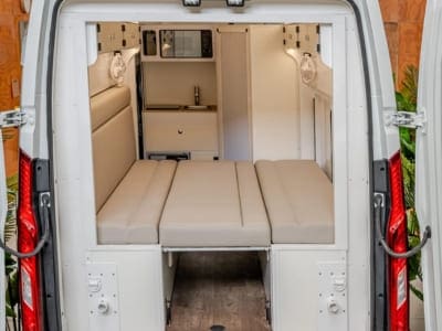 | Details | Vehicle: LDV Deliver 9 Seats: 3 x seatbelts Body Style: Van Engine Size: 2L Turbo Diesel Fuel Usage: +/- 10-12L / 100kms Fuel Type: Diesel Transmission: 6 speed Automatic Wide angle reverse camera Reverse parking sensors ABS / EBD / BAS braking Seats convert to double bed (1900mm x 1600mm) Internal table Interior LED lighting Curtains on all windows Concealed storage |